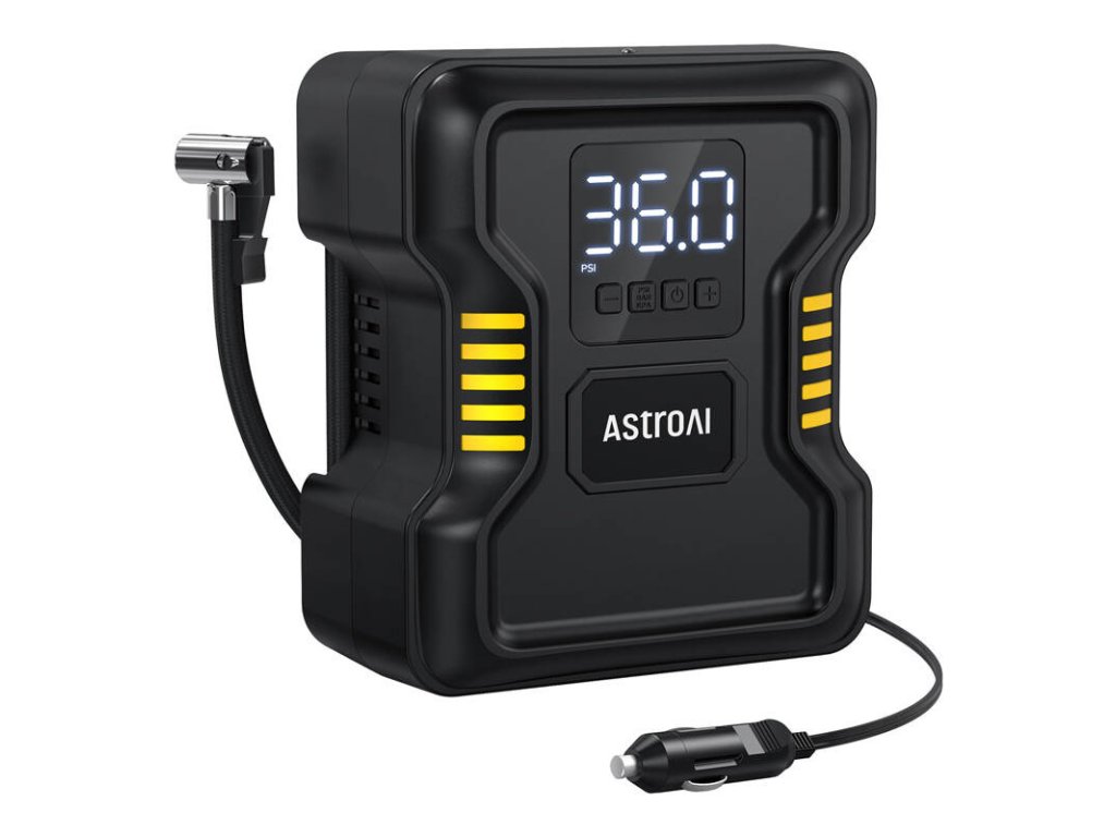 AstroAI JY21P160-12 je vzduchový kompresor určený k rychlému, přesnému a bezpečnému nafukování pneumatik a jiných nafukovacích předmětů. S jeho pomocí se snadno postaráte o správný tlak v pneumatikách při každodenním používání i v nouzových situacích, kdy záleží na čase a spolehlivosti.