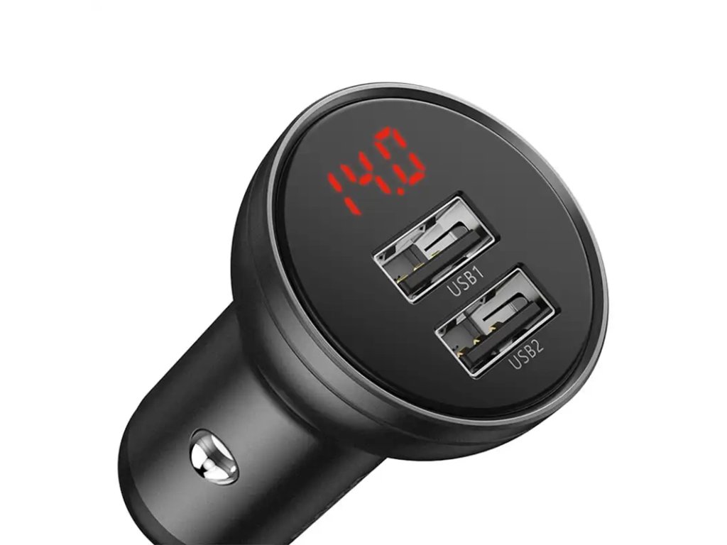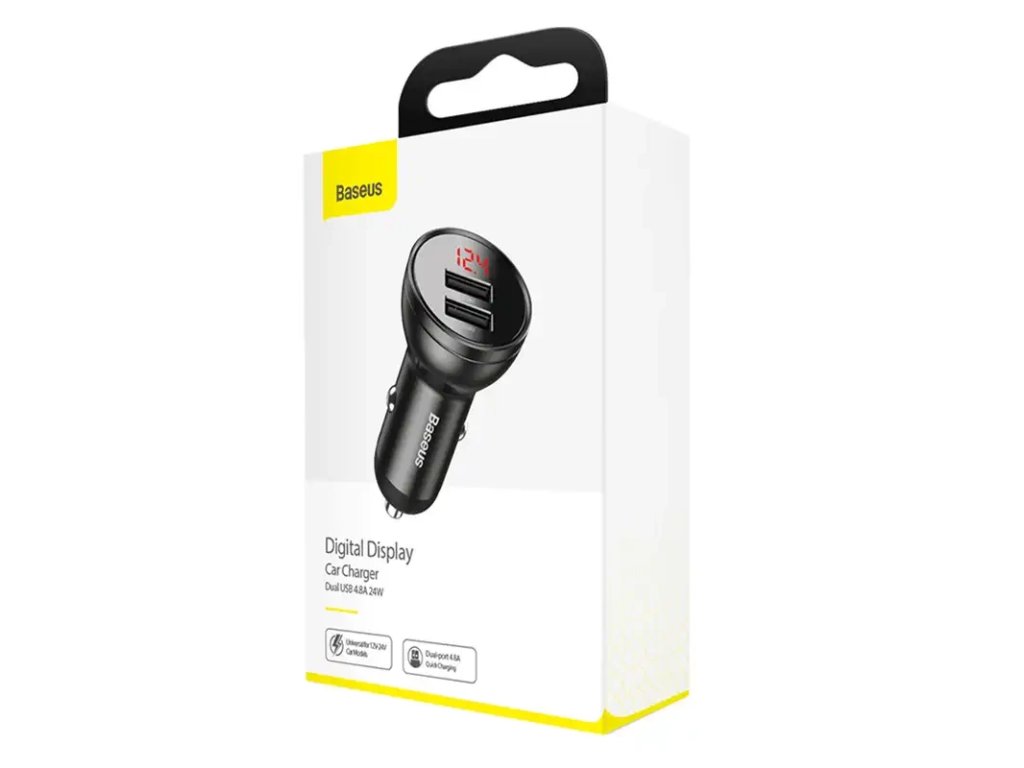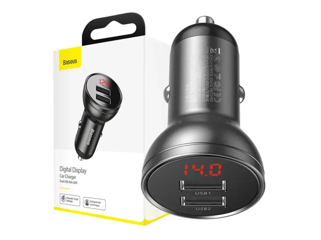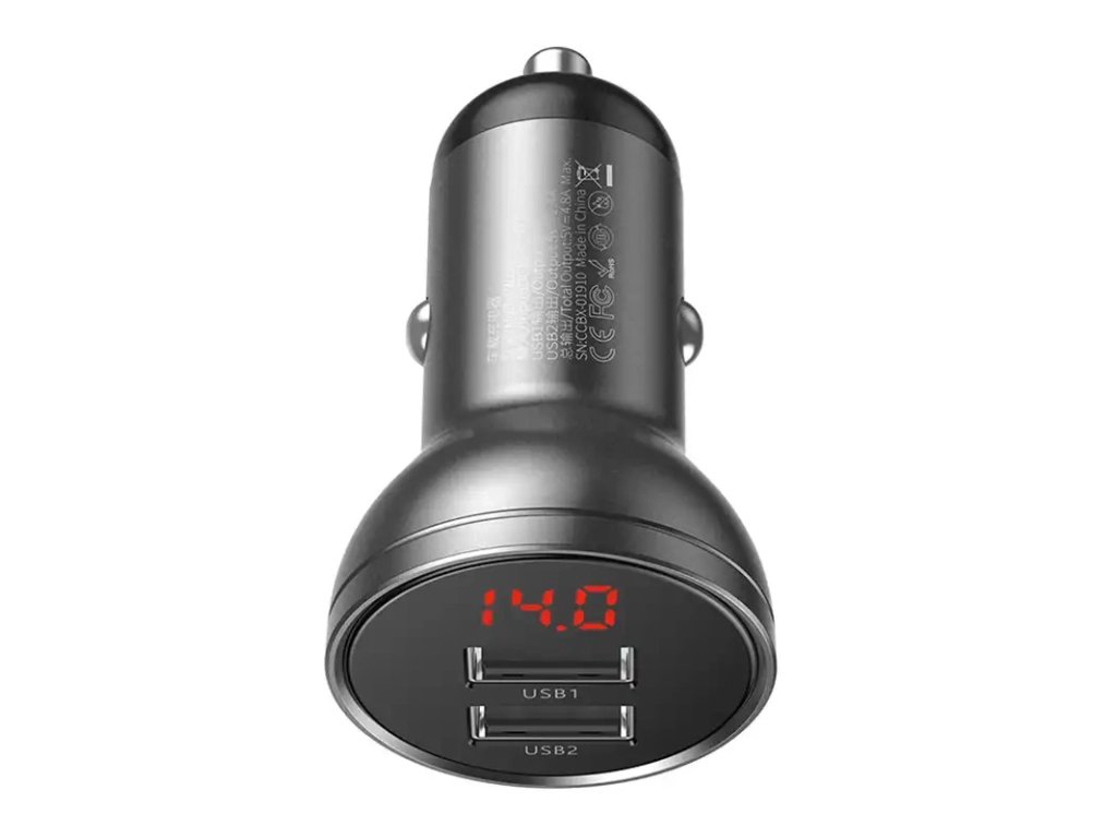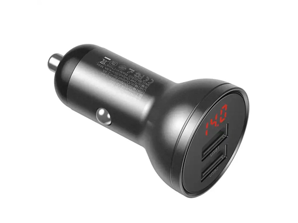 Autonabíječka Baseus s displejem, 2x USB, 4,8 A, 24 W (šedá)