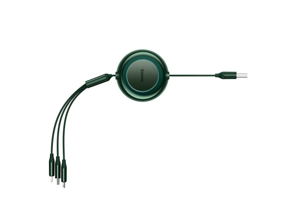 Baseus Bright Mirror 2, USB kabel 3 v 1 pro micro USB / USB-C / Lightning 3,5A 1,1 m (zelený)