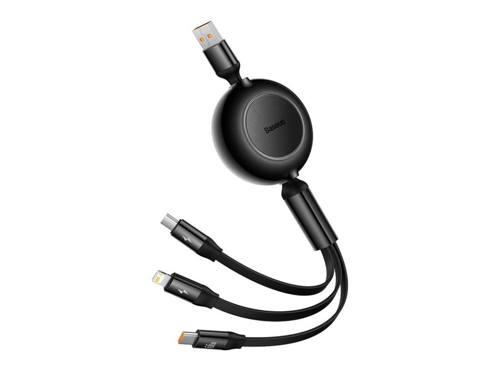 Kabel má 3 výstupní porty - USB-C, Lightning a micro USB. To znamená, že jej budete moci používat v různých situacích, a navíc bez problémů připojíte 3 zařízení najednou. Kompaktní provedení se zatahovacím mechanismem zajišťuje snadné skladování a přepravu. Rozhodněte se pro kombinaci funkčnosti a pohodlí s Baseus Bright Mirror 3 !
