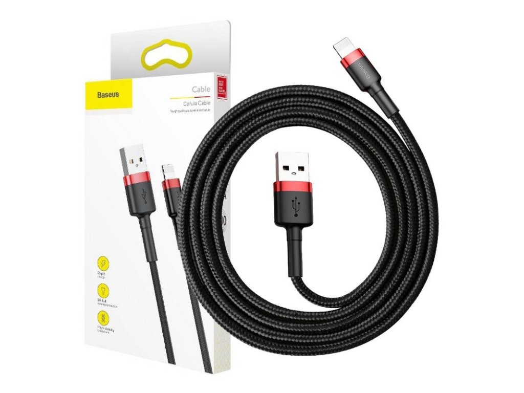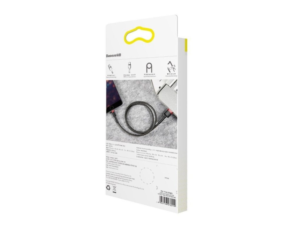Kabel Baseus má délku 200 cm a maximální výstupní proud 1,5 A. Kabel poskytuje pohodlné používání a vysokou funkčnost. Byl vyroben z vysoce kvalitních materiálů, které zaručují dlouhou životnost výrobku. Byl vyroben z nylonového materiálu, takže se nezamotává. Kabel umožňuje nabíjení a přenos souborů mezi zařízeními vybavenými vstupem USB a zařízeními Apple vybavenými vstupem Lightning. Hliníkové koncovky, opletený kabel a zesílený gumový spoj zajišťují dlouhou životnost.