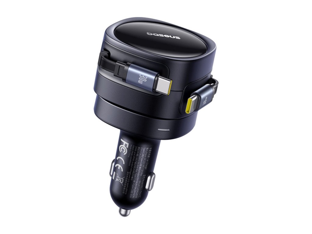 Nabíječka do auta Baseus se dvěma vestavěnými kabely USB-C s celkovým výkonem 60 W poskytuje rychlé nabíjení dvou zařízení současně a je ideální pro řidiče i spolujezdce. Integrovaný bezpečnostní systém, otočná konstrukce a kompatibilita s napětím 12-24 V zajišťují spolehlivost v každém vozidle.