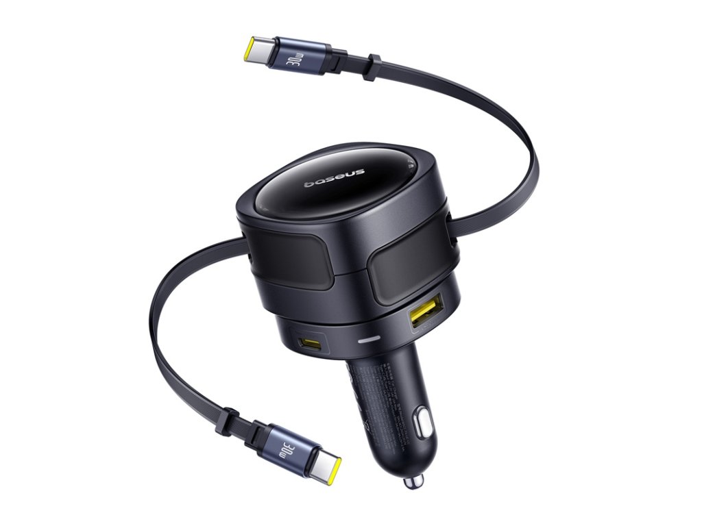 Díky dvěma vestavěným kabelům USB-C a dvěma dalším portům (USB-C a USB-A) umožňuje nabíječka do auta Baseus nabíjet až čtyři zařízení současně s celkovým výkonem až 90 W. Integrovaný bezpečnostní systém, otočná konstrukce a kompatibilita s napětím 12-24 V zaručují spolehlivost v každém vozidle.