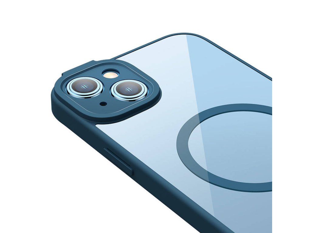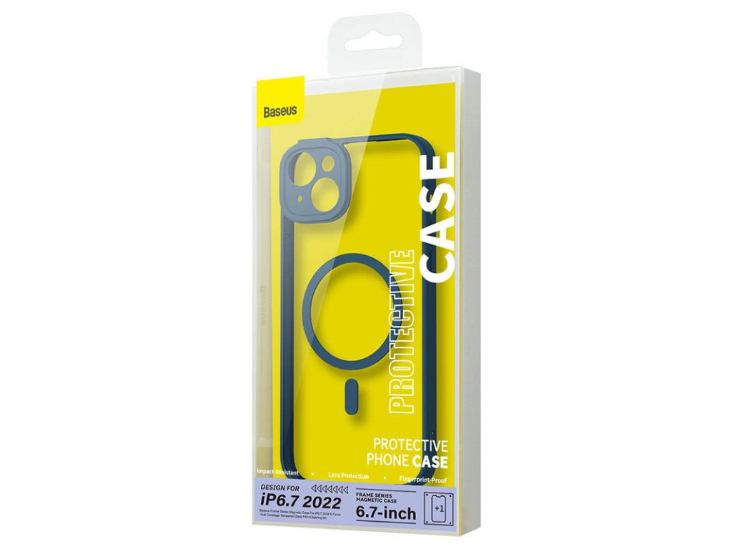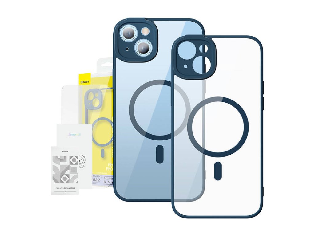 Baseus Frame Transparentní magnetický kryt a sada tvrzeného skla pro iPhone 14 Plus (modrý)