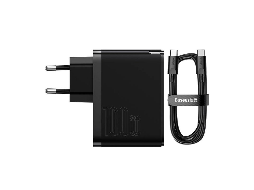 Baseus GaN USB-C + USB, 100 W + 1 m kabel (černý)