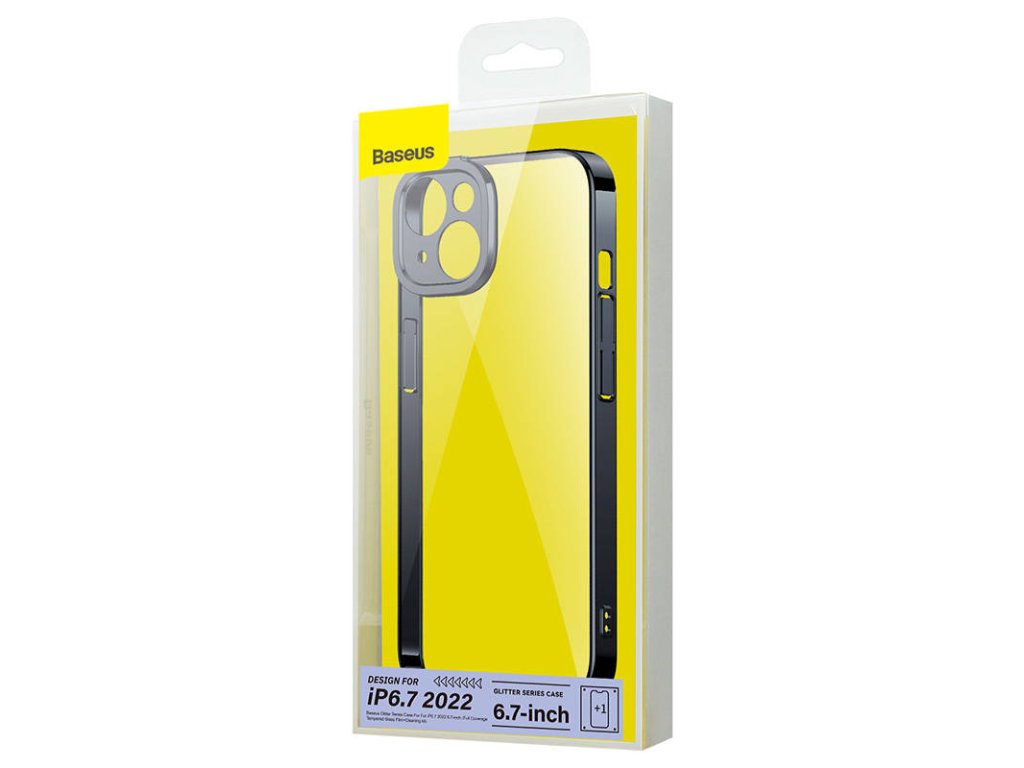 Baseus Glitter Transparent Case and Tempered Glass Kit pro iPhone 14 Plus (Black)
