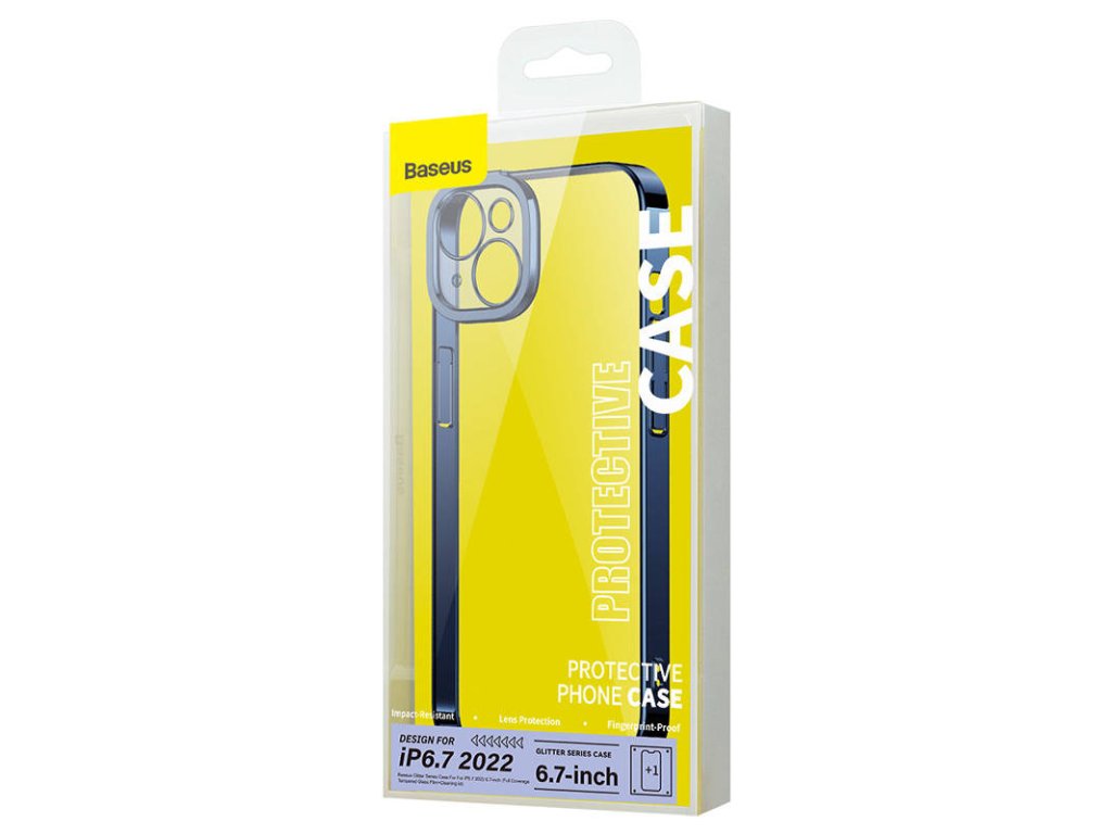 Baseus Glitter Transparent Case and Tempered Glass Kit pro iPhone 14 Plus (modrý)