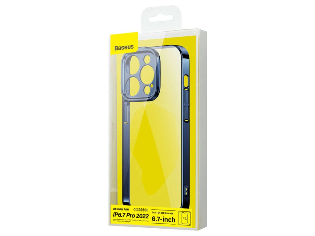 Baseus Glitter Transparent Case and Tempered Glass Kit pro iPhone 14 Pro Max (modrý)
