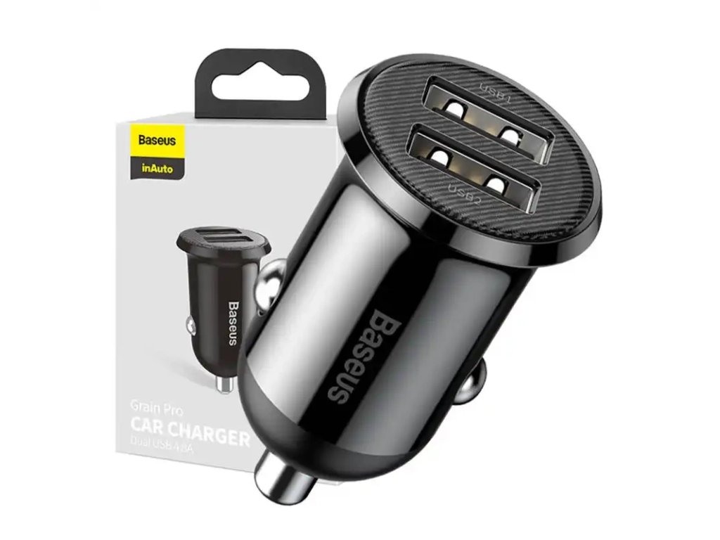 Baseus Grain Pro 2x USB 4,8A nabíječka do auta (černá)