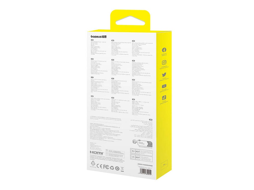 Díky rozbočovači podporujícímu nabíjení PD s výkonem až 100 W obnovíte napájení kompatibilních zařízení během okamžiku. Ať už jste v kanceláři, na cestách nebo doma, produkt Baseus vám umožní rychle nabít potřebná zařízení!