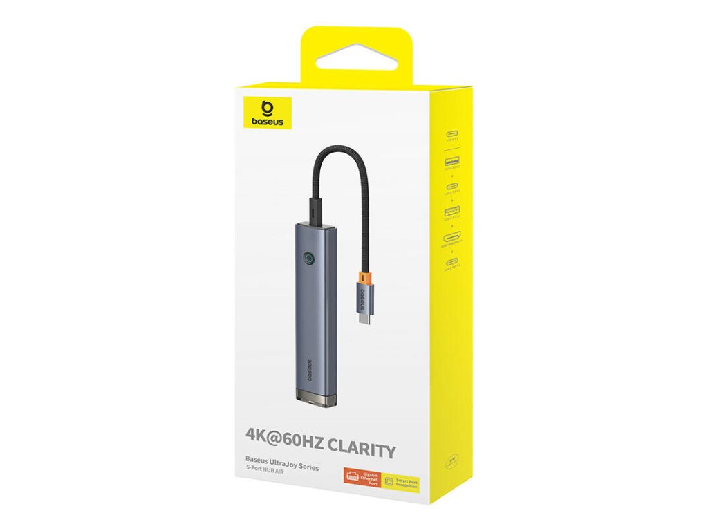 Rozbočovač 5 v 1 od společnosti Baseus nabízí rychlé 100W PD nabíjení, vynikající kvalitu 4K videa, přenos dat rychlostí 5 Gb/s a praktické tlačítko pro odpojení sdílení obrazovky. Je vybaven 3 porty USB 3.0, 100W portem USB-C PD a portem HDMI s podporou rozlišení 4K HD. Kromě toho podporuje funkci OTG a technologii Plug&Play. Rozšíří možnosti vašeho notebooku a zvýší vaši produktivitu při práci