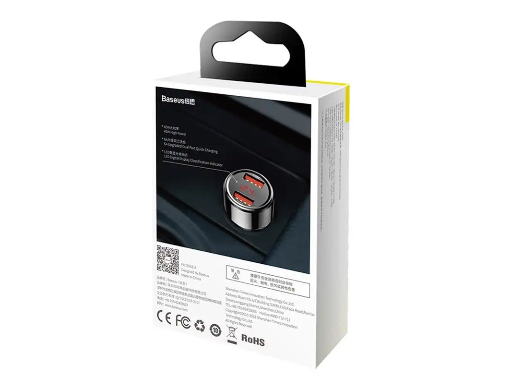 S nabíječkou do auta Baseus můžete nabíjet svá zařízení výkonem 45 W bez obav z poškození nabíjeného zařízení. Podporuje protokoly rychlého nabíjení, jako je QC 3.0/2.0, SCP, FCP, AFC, MTK PE, což vám umožní rychle nabíjet dvě zařízení současně.