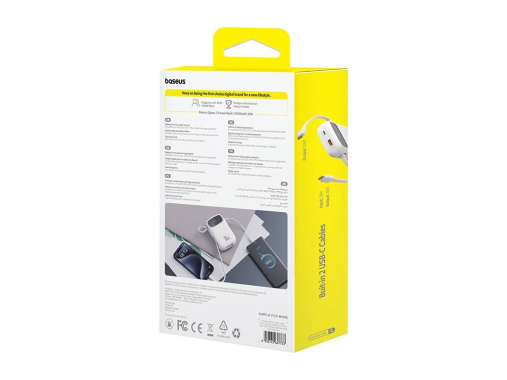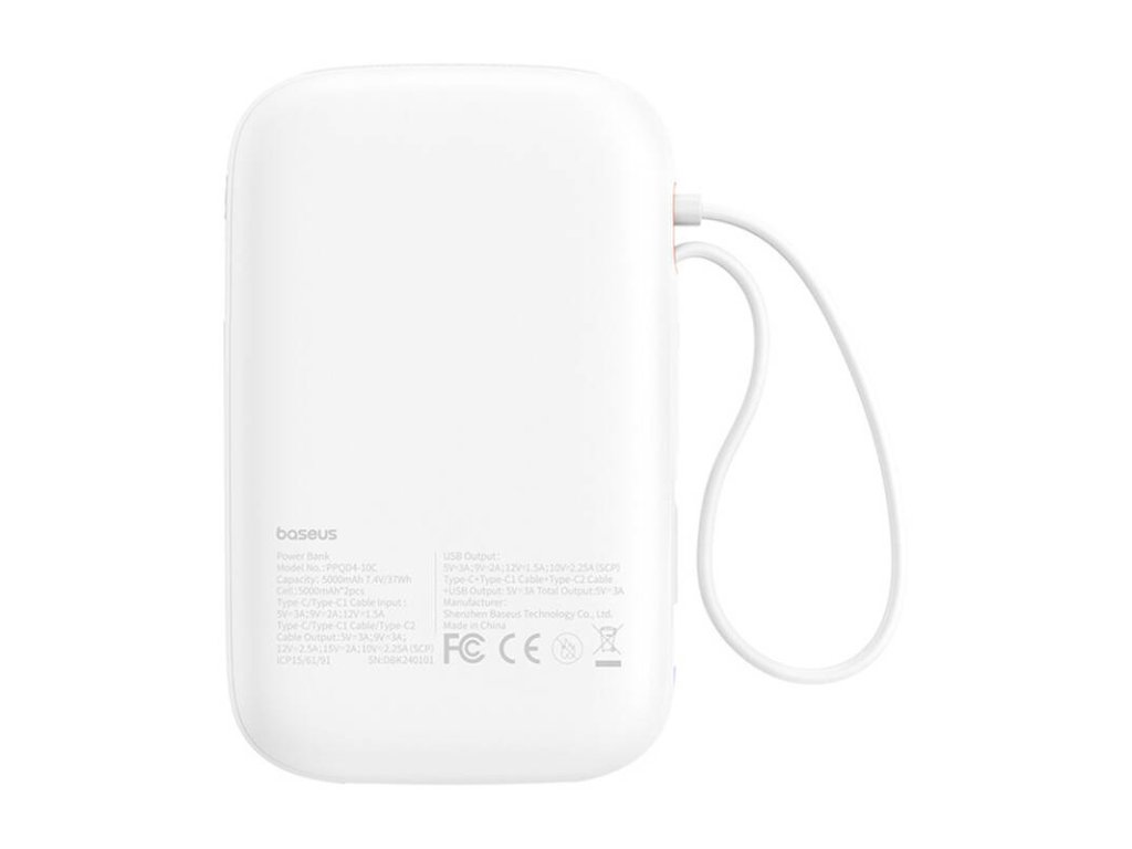 Baseus QPow 2 umožňuje nabíjet až čtyři zařízení současně díky vestavěným kabelům USB-C a dalším portům USB. Tato funkce je ideální pro ty, kteří potřebují nabíjet několik zařízení najednou, například smartphone, tablet, bezdrátová sluchátka nebo chytré hodinky. To vše je možné díky pokročilým protokolům rychlého nabíjení, jako jsou PD3.0, QC3.0, SCP a další.