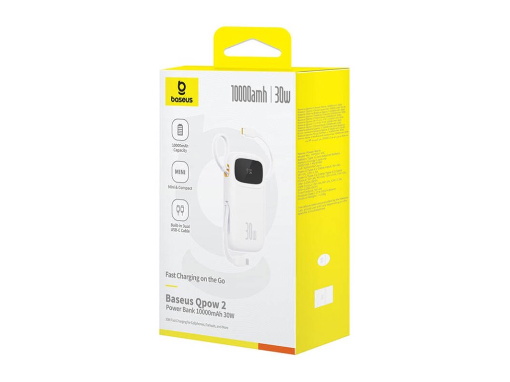 Baseus QPow 2 je powerbanka, která kombinuje vysokou kapacitu s pohodlným přenosným designem. S kapacitou 10 000 mAh a 30W rychlonabíjením je ideálním každodenním společníkem, který vám poskytne energii, kdykoli ji potřebujete. Díky své mobilitě a chytrým funkcím je Baseus QPow 2 ideální volbou pro aktivní uživatele, kteří si cení pohodlí a spolehlivosti.