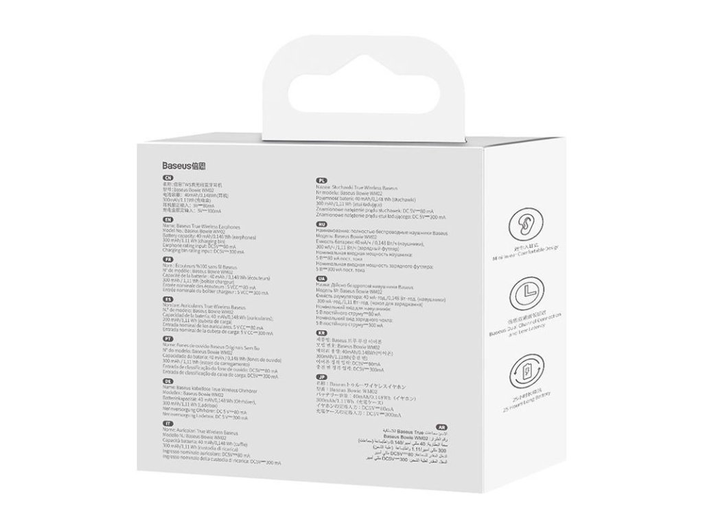 Ergonomický design, originální provedení, stabilní bezdrátové připojení a dlouhá provozní doba jsou hlavními přednostmi sluchátek TWS Baseus Bowie WM02. Jsou lehká a přenosná, není problém je přenášet a výkonná baterie zajišťuje až 25 h provozu. Bluetooth 5.3 zajišťuje spolehlivé připojení, zatímco průhledné prvky pouzdra dodávají šmrnc. Výhodou je také nízká latence 60 ms a pohodlné dotykové ovládání.