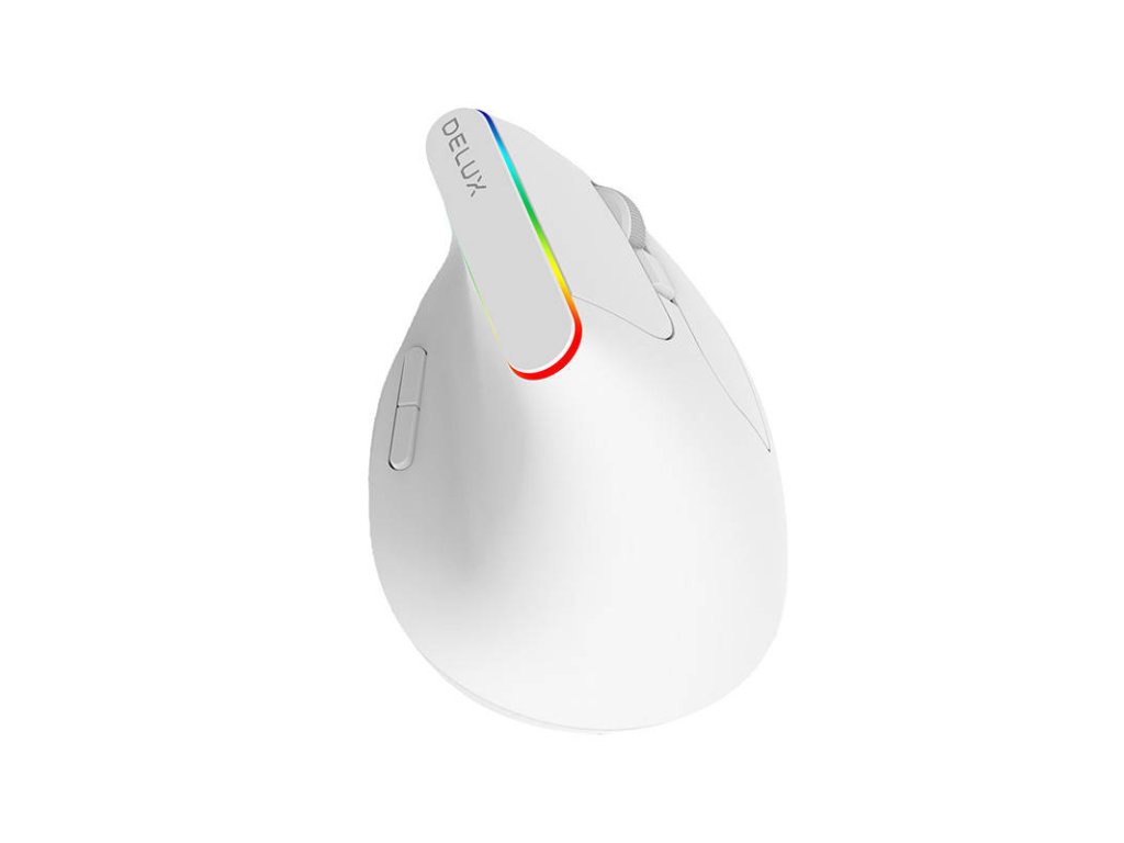 Bezdrátová vertikální myš Delux M618C 2.4G 1600DPI RGB (bílá)