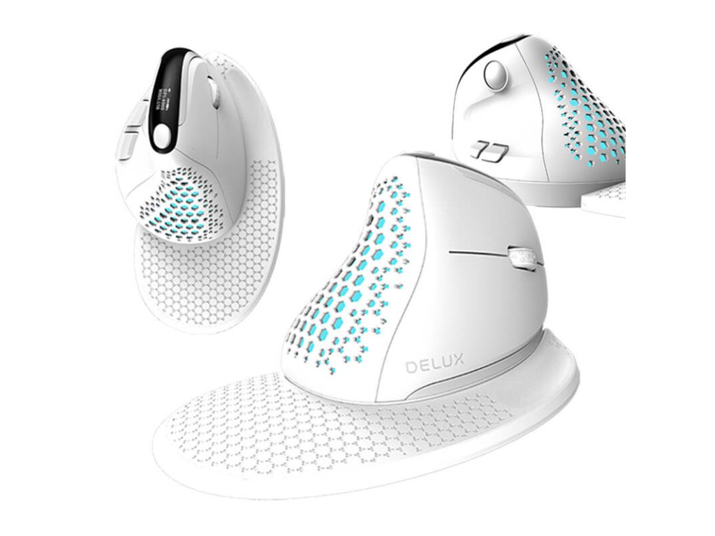 Bezdrátová vertikální myš Delux M618XSD BT+2.4G RGB (bílá)