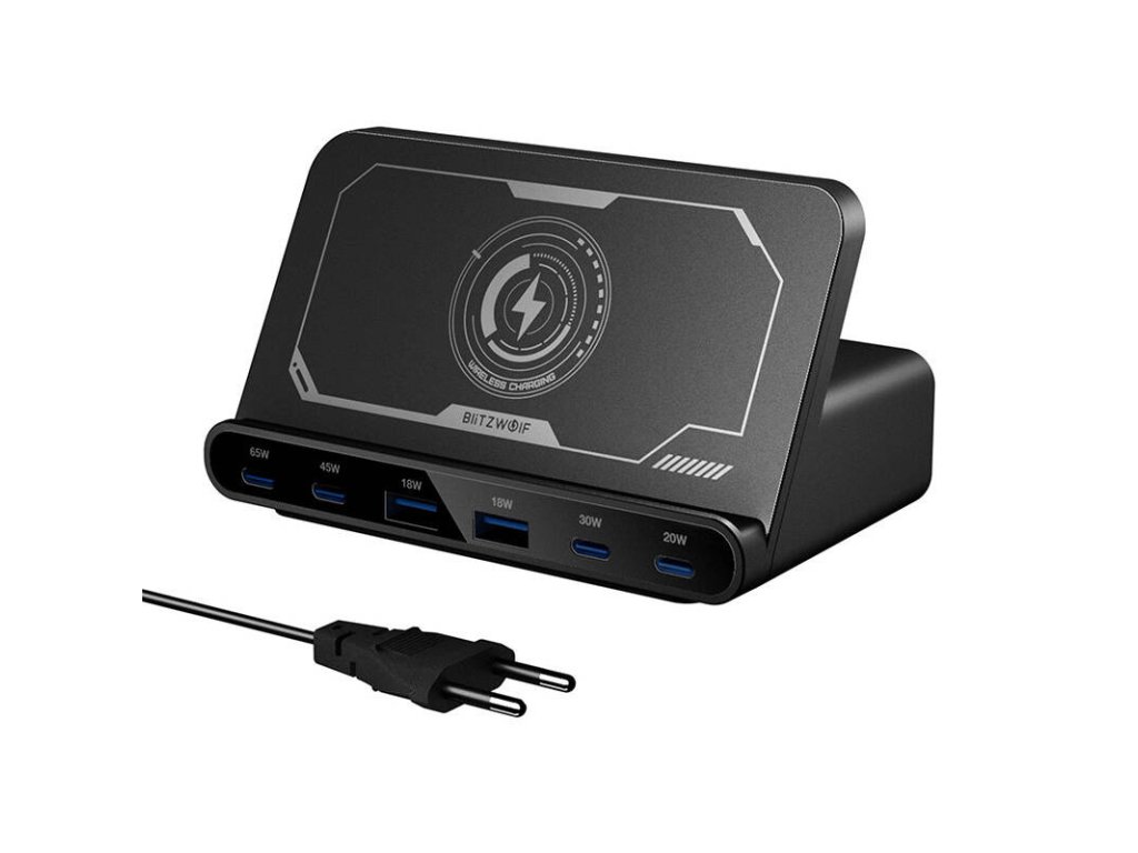 Blitzwolf BW-S27 160W, 2xUSB-A, 4xUSB-C, 15W bezdrátová nabíječka (černá)