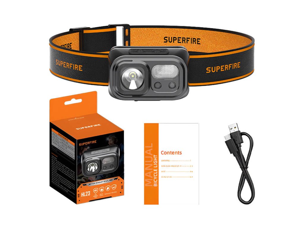 Čelová svítilna Superfire HL23 je vybavena vysoce kvalitní diodou LED, která poskytuje rovnoměrné a stabilní osvětlení s jasem 220 lm a dosvitem 120 m. Má také přídavnou lampu, která zvyšuje použitelnost výrobku. Svítilna HL23 se proto osvědčí při opravách auta, večerních procházkách nebo pod stanem.