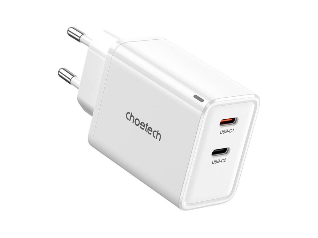 Síťová nabíječka Choetech PD6013, GaN, 2x USB-C, PD65W (bílá).