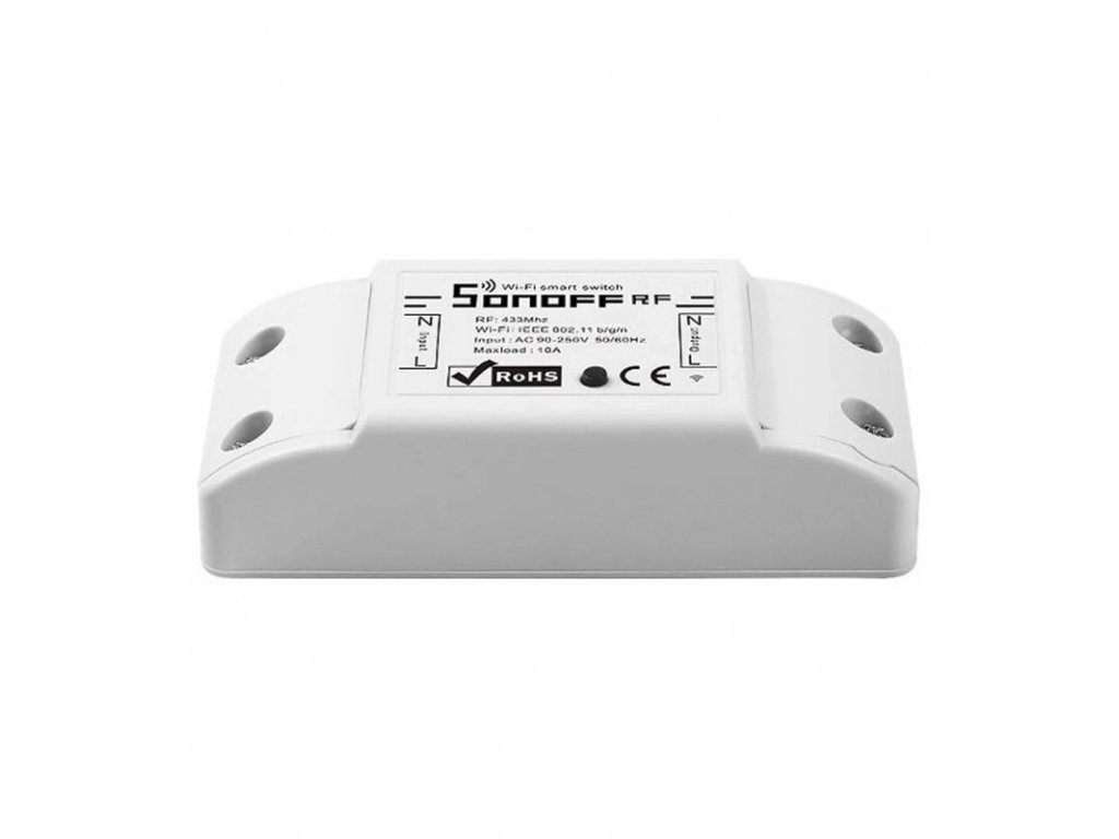 Sonoff RF je levný inteligentní spínač WiFi s modulem rádiového přijímače 433,92 MHz, který umožňuje jeho ovládání pomocí rádiového dálkového ovládání. Jedná se o dálkově ovládaný spínač, který lze připojit k široké škále zařízení. Výkonový spínač Sonoff RF přenáší data do cloudové platformy prostřednictvím připojení WiFi, což uživatelům umožňuje dálkově ovládat všechna připojená zařízení prostřednictvím mobilní aplikace eWeLink.