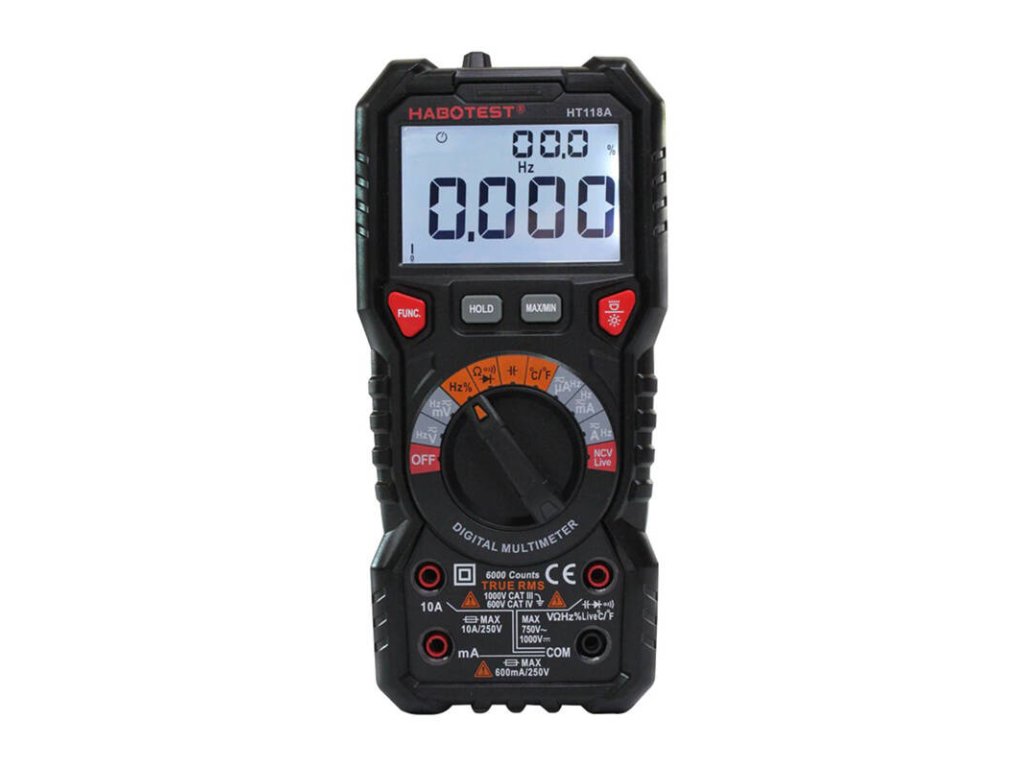 Habotest HT118A podporuje také další užitečné funkce, jako je testování max/min nebo diod. Můžete jej také použít ke kontrole skutečné efektivní hodnoty. Umožňuje také ukládání dat. Automatická volba rozsahu navíc zajišťuje optimální měření v každé situaci.