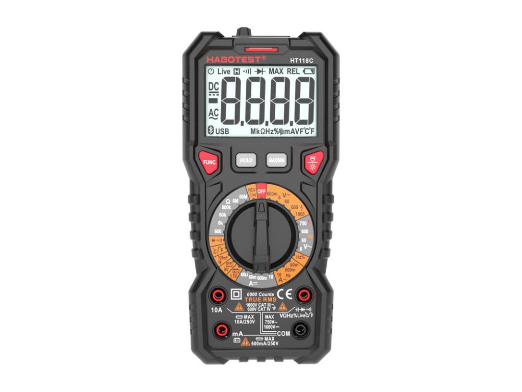HT118C má mnoho užitečných funkcí. Mimo jiné můžete měřit střídavé a stejnosměrné napětí, kapacitu a také teplotu v rozsahu -40 °C - 1000 °C. Můžete také zkontrolovat, zda je kabel pod napětím, a ověřit spojitost. Tím však možnosti nekončí! Přístroj umožňuje také bezkontaktní měření napětí NCV.