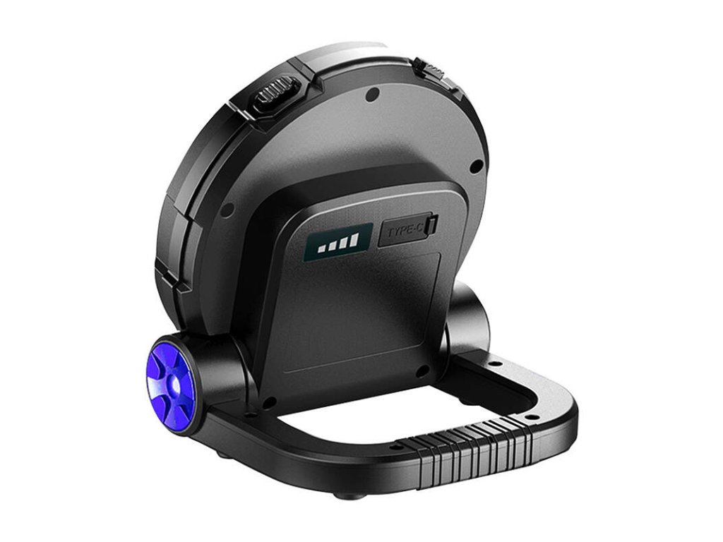 Polohu svítilny můžete nastavit o 210° a rukojeť o 180°, což dále zvyšuje komfort používání. Díky magnetické základně je svítilna ideální pro opravářské práce, protože umožňuje stabilní upevnění na kovové povrchy. Nabíjení probíhá prostřednictvím portu USB-C a světelný indikátor usnadňuje sledování stavu baterie.