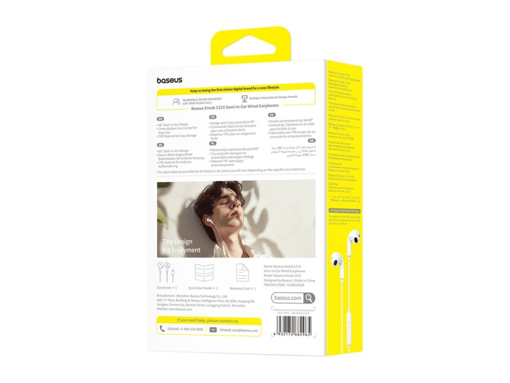 Baseus Encok CZ19 jsou drátová sluchátka do uší s 13mm dynamickým měničem, která poskytují čistý zvuk a stabilní připojení přes USB-C. Dobře poslouží při poslechu hudby, sledování filmů, telefonování a hraní her. Díky lehké a promyšlené konstrukci zařízení stabilně drží v uších, aniž by způsobovalo nepohodlí. Ovládání usnadňuje dálkový ovladač integrovaný do kabelu.