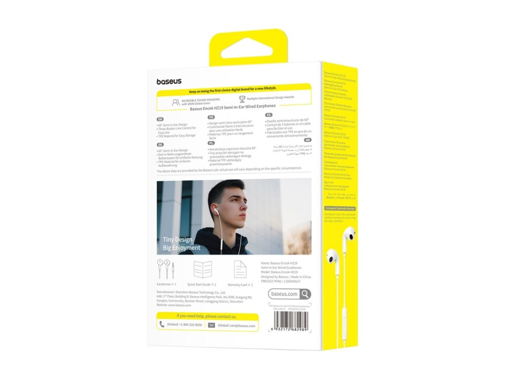 Baseus Encok HZ19 jsou drátová sluchátka do uší s 13mm dynamickým měničem, která poskytují čistý zvuk a stabilní připojení prostřednictvím 3,5mm jack konektoru. Dobře poslouží při poslechu hudby, sledování filmů, telefonování a hraní her. Díky lehké a promyšlené konstrukci zařízení stabilně drží v uších, aniž by způsobovalo nepohodlí. Dálkové ovládání integrované do kabelu usnadňuje ovládání.