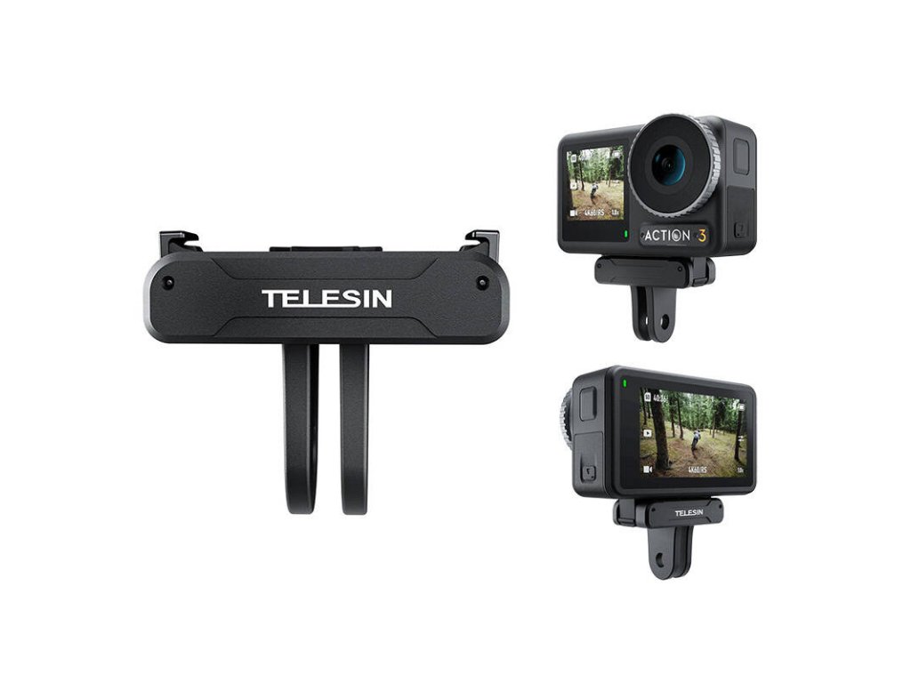 Získejte nový pohled na své záběry s adaptérem Telesin. Byl vytvořen s ohledem na kamery DJI Action 4/3 a zaručuje okamžité připevnění k držáku pomocí silné magnetické základny, která zajistí stabilitu a bezpečnost vašeho zařízení. Kovový klip poskytuje dodatečné zabezpečení, které chrání vaše zařízení před nechtěnými nárazy, a zajišťuje spolehlivost za všech podmínek.