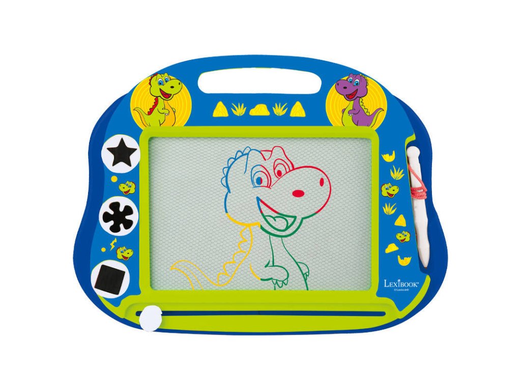 Objevte kouzelný svět kreativity s magnetickou kreslící tabulí od Lexibooku! Vzdělávací pomůcka s motivem dinosaurů je navržena tak, aby inspirovala mladé mysli k objevování a vyjadřování jejich uměleckého talentu. Praktická rukojeť usnadňuje přenášení tabule a umožňuje zábavu v různých prostředích. Kreslení je snadné a zábavné díky přiloženému magnetickému peru. Dodatečná razítka umožňují vyrazit různé tvary. Součástí balení je guma pro okamžité vyčištění povrchu, což malým umělcům poskytuje nekonečné možnosti. Tabule se snadno udržuje a splňuje současné bezpečnostní normy, takže je skvělou volbou pro děti všech věkových kategorií