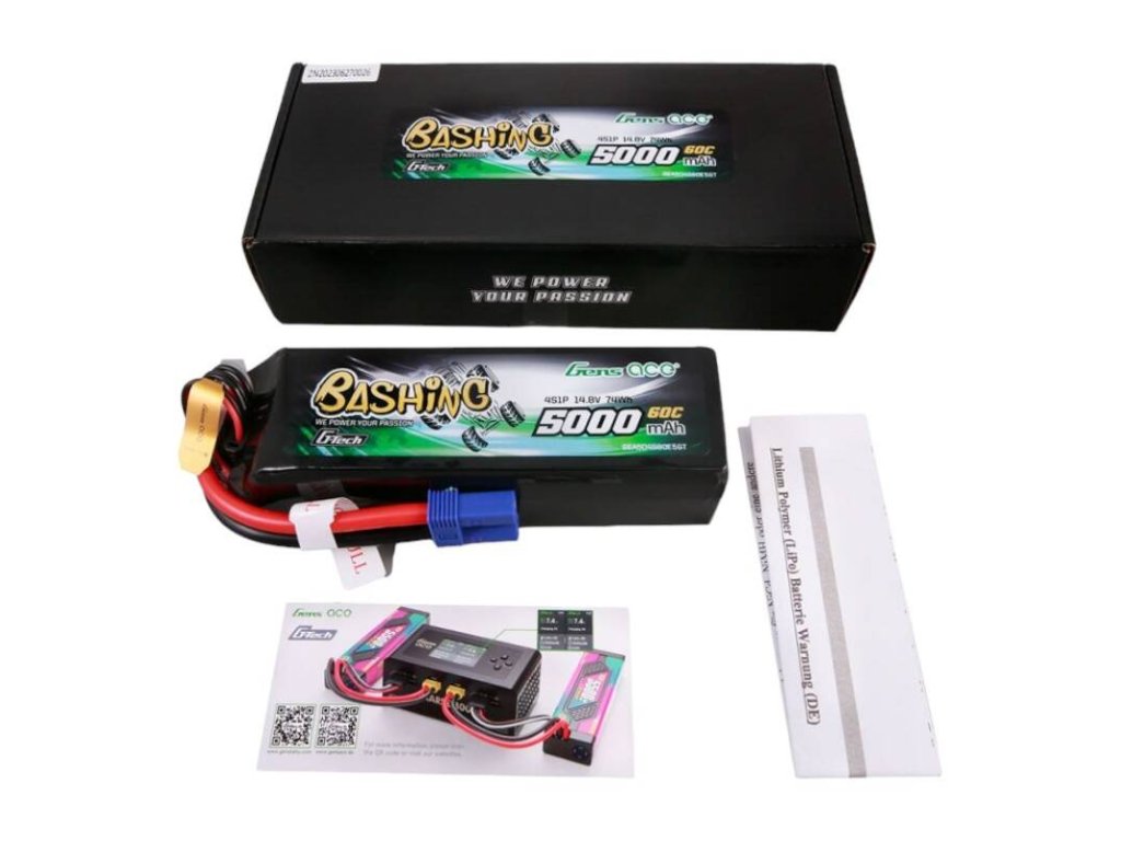 Gens ace G-Tech Lipo s konektorem EC5 Plug Bashing Series je výkonné řešení určené pro začínající a středně pokročilé RC nadšence. Jako základní řada baterií Gens Ace pro RC auta je řada Bashing ideální pro každodenní trénink a zábavu. Tento model nabízí vynikající výkon pro většinu vozidel v měřítku 1:8 včetně všech modelů ARRMA v měřítku 1:8, jako jsou Typhoon, Kraton, Nero, Senton, Outcast a podobná vozidla, například Losi dvxl-e. Nabízí stabilitu a velkou kapacitu 5000 mAh při napětí 14,8 V, takže je vhodný pro použití v širší škále modelů včetně aut v měřítkách 1:5 až 1:8. Konektor EC5 poskytuje pevné a bezpečné připojení a doporučená rychlost nabíjení 1-3C umožňuje efektivní obnovu.