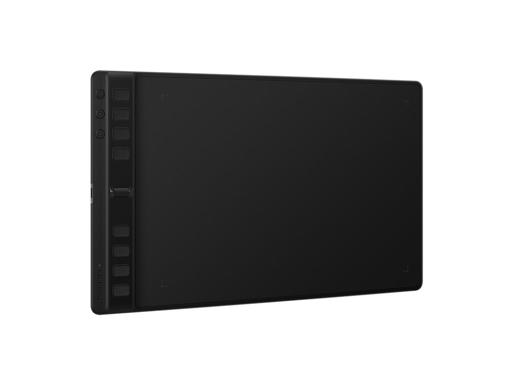 Společnost HUION se postarala o to, aby byl tablet pohodlný pro každého. Port USB-C je umístěn na levé straně a rozložení tlačítek a rolovací lišty je symetrické. Zařízení tak můžete snadno otočit o 180° a přizpůsobit nastavení své dominantní ruce. Podporuje také otočení o 90°, což ocení ti, kteří používají monitory v orientaci na výšku.