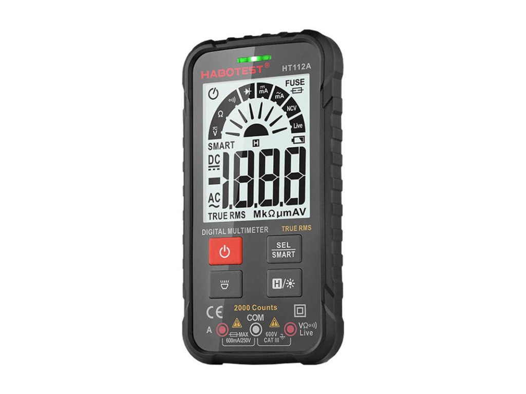Multimetr Habotest vyniká neuvěřitelnou přesností. Mimo jiné přesně měří střídavé a stejnosměrné napětí, odpor a proud. Rozpozná také činnost kabelů. Můžete s ním testovat diody, kontrolovat spojitost a skutečnou efektivní hodnotu. Umožňuje také bezkontaktní detekci napětí (NCV). Model HT112A je rovněž vybaven funkcí SMART pro inteligentní detekci.