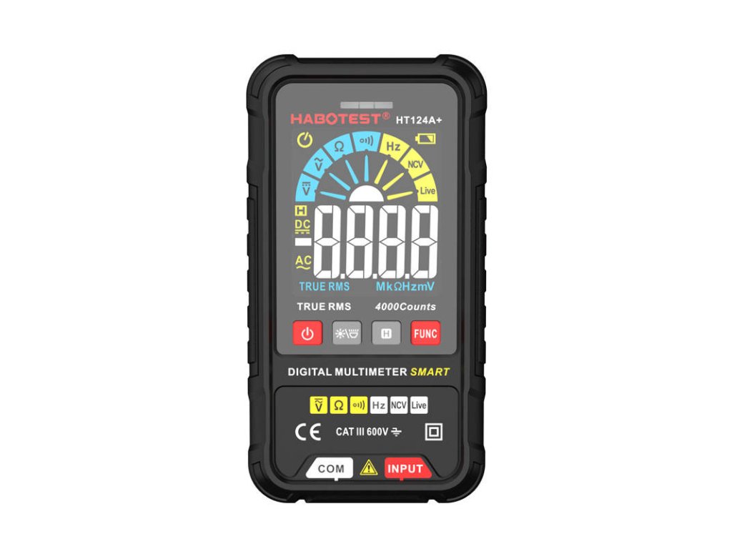 Digitální víceúčelový multimetr Habotest HT124A+ je praktický přístroj, který vás překvapí mnoha možnostmi. Mimo jiné umožňuje vysoce přesné měření střídavého a stejnosměrného napětí, odporu, spojitosti nebo frekvence. Kromě toho nabízí funkci Live Test, umožňuje detekci bezkontaktního napětí (NCV) a mnoho dalšího. Důležité je, že multimetr má praktická tlačítka, pomocí kterých můžete efektivně volit funkce.