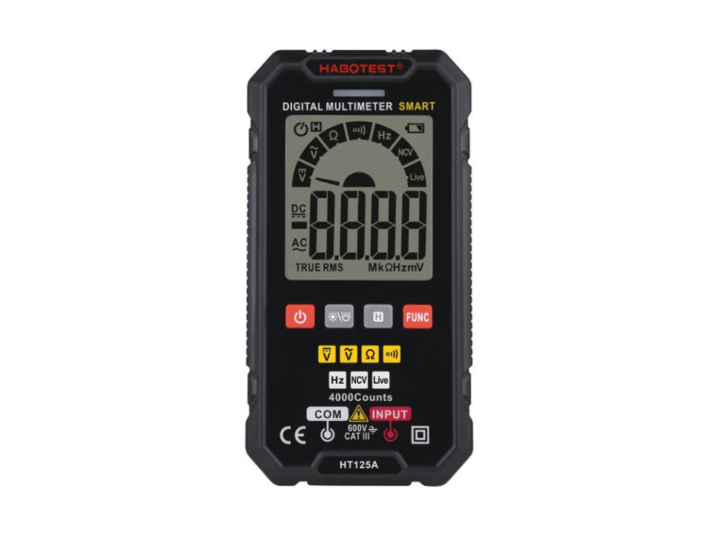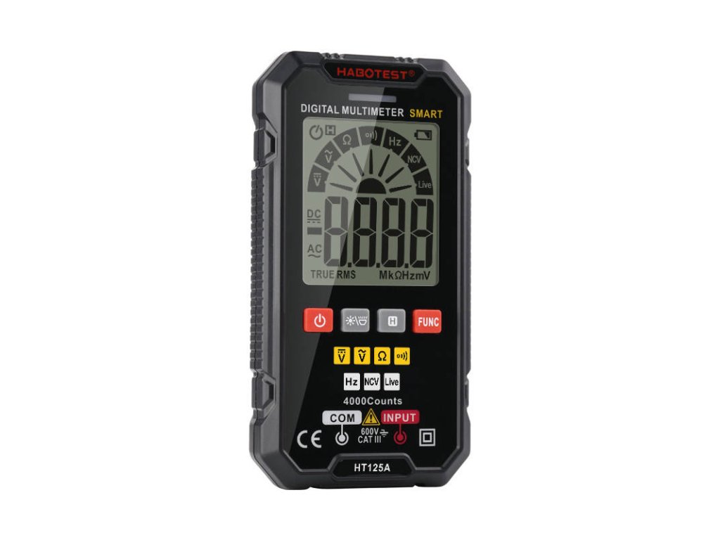 Digitální víceúčelový multimetr Habotest HT125A je praktický přístroj, který vás překvapí mnoha možnostmi. Mimo jiné umožňuje vysoce přesné měření střídavého a stejnosměrného napětí, odporu, spojitosti nebo frekvence. Kromě toho nabízí funkci Live Test, umožňuje testování diod, detekci bezkontaktního napětí (NCV) a mnoho dalšího. Důležité je, že multimetr má praktická tlačítka, pomocí kterých můžete efektivně volit funkce.