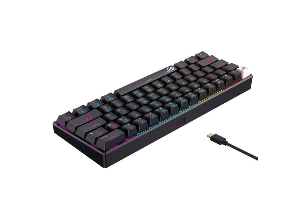 Havit KB903L je drátová mechanická klávesnice určená pro hráče a lidi, kteří si cení přesnosti a pohodlí. Je vybavena 61 klávesami a díky svému kompaktnímu rozložení šetří místo na stole, aniž by byla obětována její funkčnost. Klávesnice se připojuje pomocí kabelu USB a zaručuje stabilitu a spolehlivý výkon, takže je vynikající volbou pro hraní her i každodenní používání.