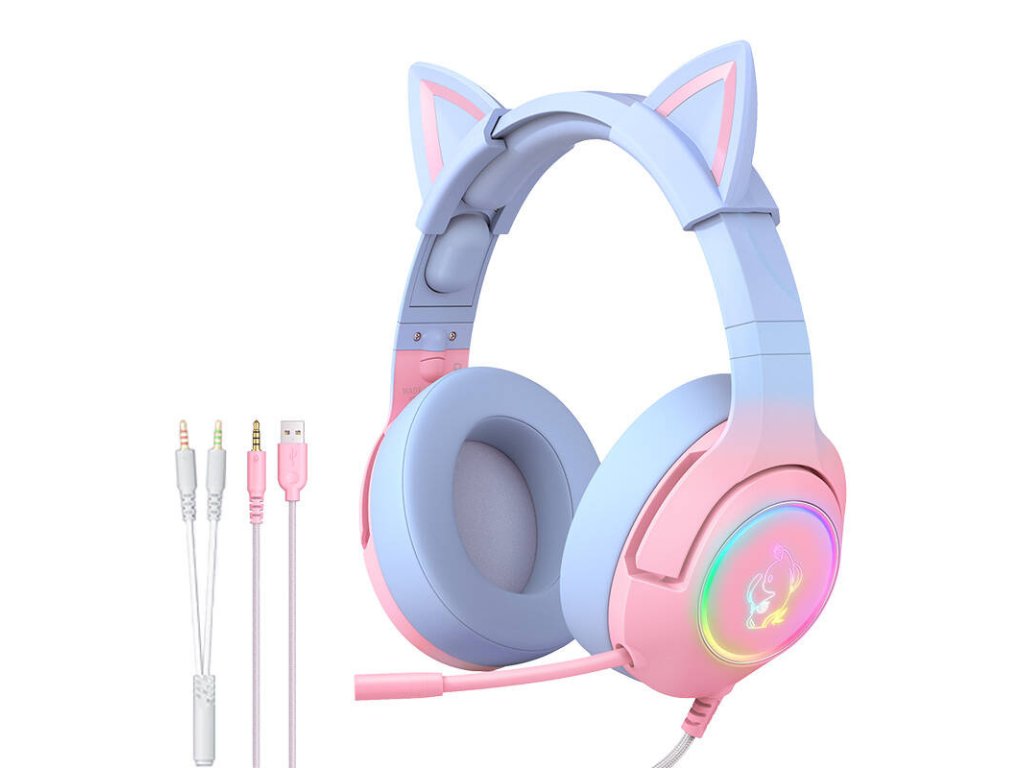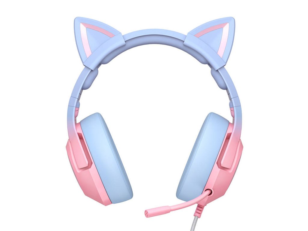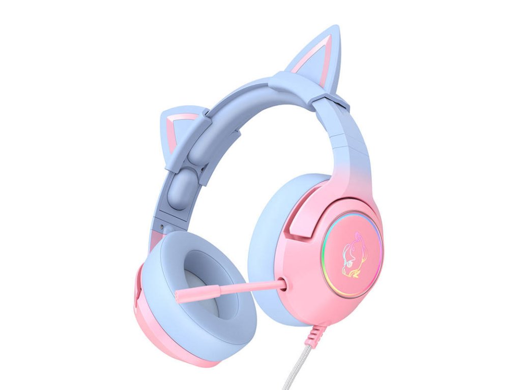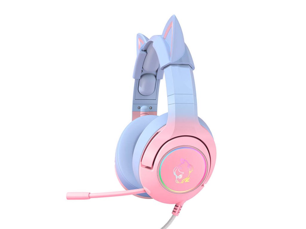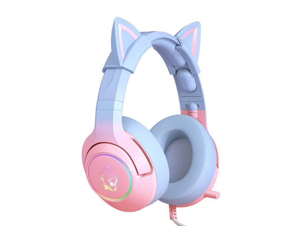 Sluchátka ONIKUMA K9 mají okouzlující jedinečný design - růžové a modré barevné provedení, kočičí uši, svítící prvky a kočičí podobizna na obou sluchátkách vyjadřují něhu, dívčí styl, jedinečnost a lásku k zábavě a zvířatům! Ukažte světu svou okouzlující osobnost ještě dnes díky stylovému designu a možnosti měnit barvu světel!