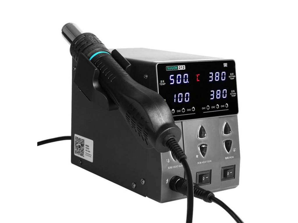 SUGON 212 je zařízení 2 v 1, které v sobě integruje horkovzdušnou stanici a páječku ve tvaru baňky. To umožňuje komplexní přístup k opravám a montáži elektroniky a nabízí jak přesné pájení chronosoučástek, tak rychlé odpájení nebo montáž SMD součástek. Díky tomu je stanice ideální pro opravny elektroniky, montážní dílny a kutily.