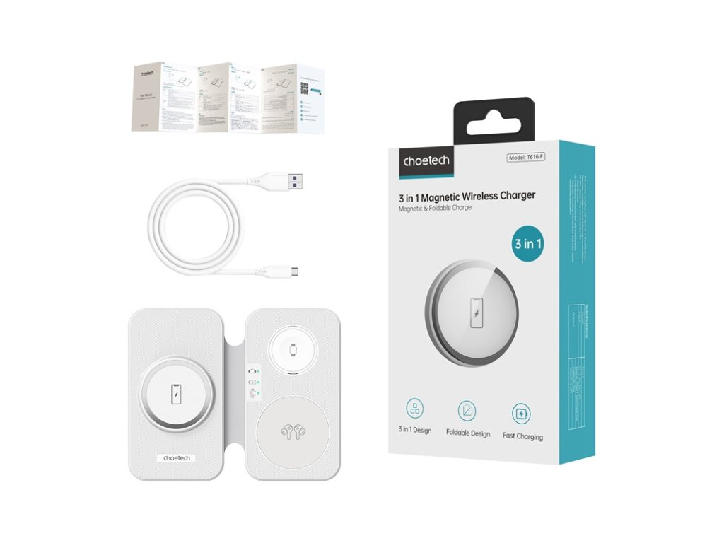Indukční nabíječka Choetech T616-F 3 v 1 (bílá)
