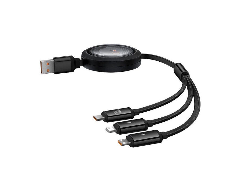 kabel 3 v 1 Baseus Free2Draw USB na M+L+C 100W, 1,1 m (černý)