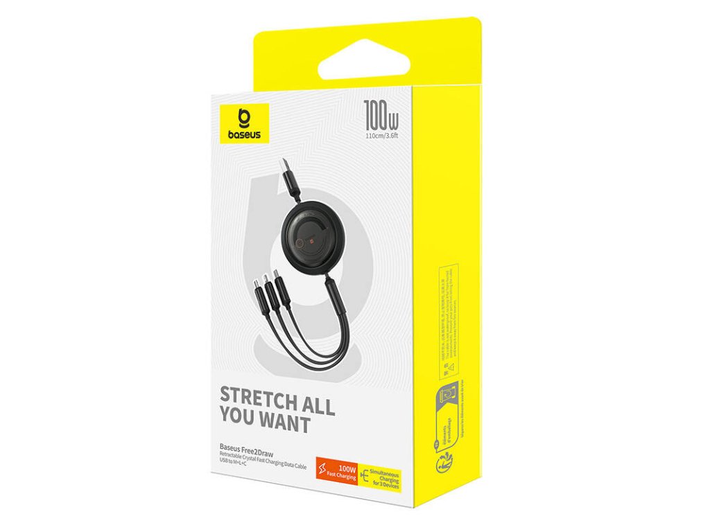 Seznamte se s Baseus Free2Draw - inovativním kabelem, se kterým můžete pohodlně nabíjet 3 různá zařízení současně. Skládací konstrukce se třemi typy konektorů - USB-C, Lightning a Micro USB - zaručuje všestrannost, zatímco robustní konstrukce a 100W výkon zaručují spolehlivost v každé situaci. Objevte novou úroveň pohodlí!