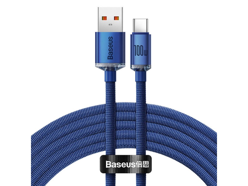 Kabel Baseus Crystal Shine z USB na USB-C, 100 W, 2 m (modrý)