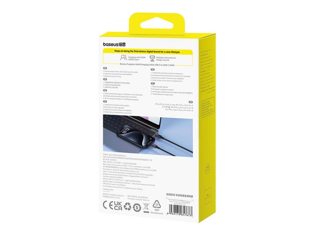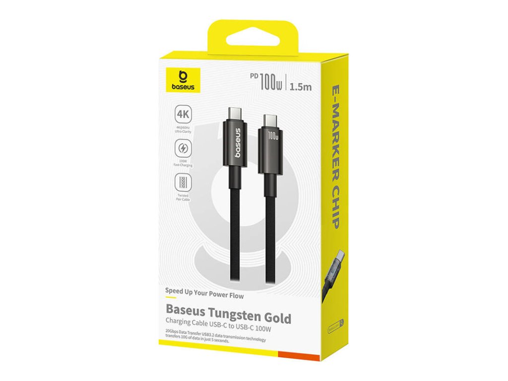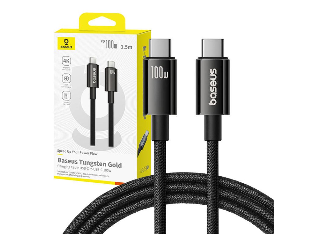 Kabel Baseus Tungsten Gold USB-C na USB-C (USB 3.2) dokáže přenášet soubory rychlostí až 20 Gb/s, podporuje rychlé nabíjení s výkonem až 100 W a poskytuje kvalitu videa 4K/60 Hz. Je také vysoce odolný a odolný proti poškození. Díky tomu se skvěle hodí pro mnoho aplikací.