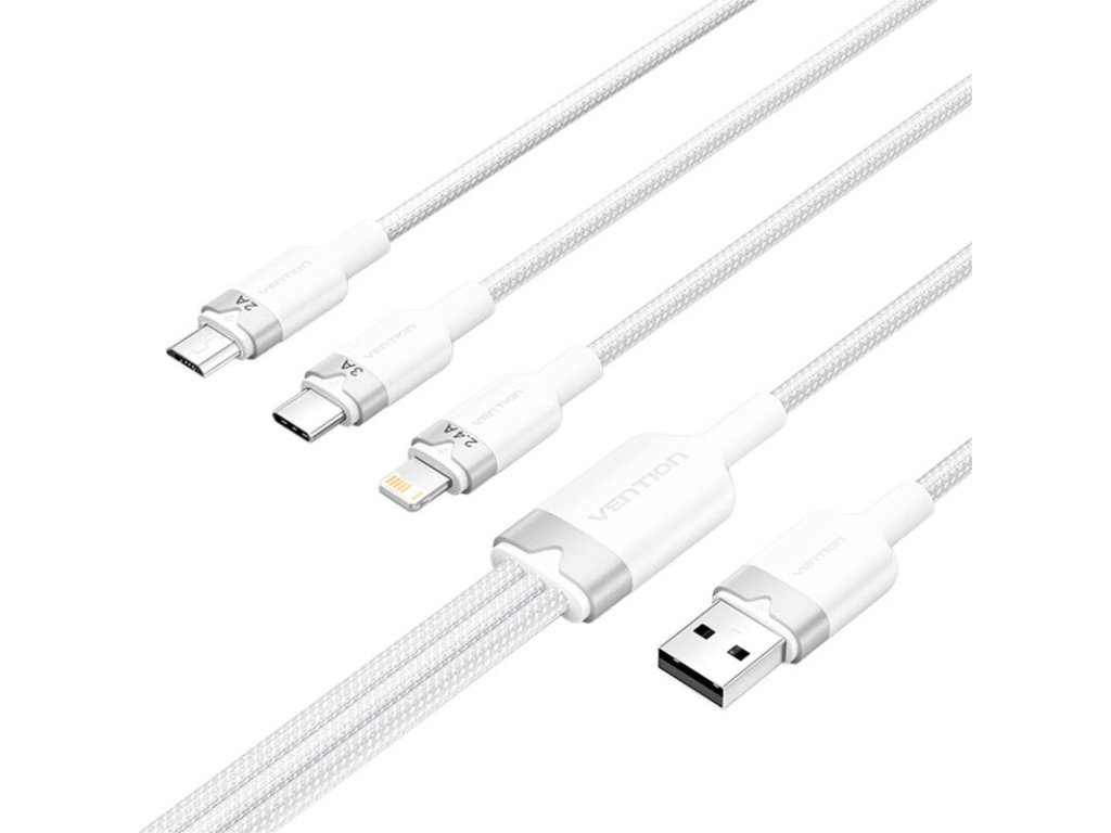 Kabel USB 2.0 A na 3v1 3A Vention CTPWG 1,5 m (bílý)