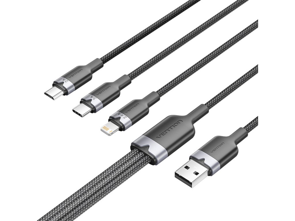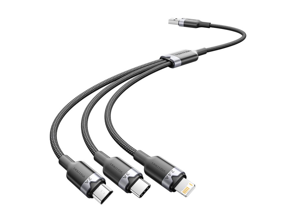 Kabel USB 2.0 A samec na 3 v 1 USB-C, Lightning a Micro-B samec Vention 3A CTPBG 1,5 m (černý)