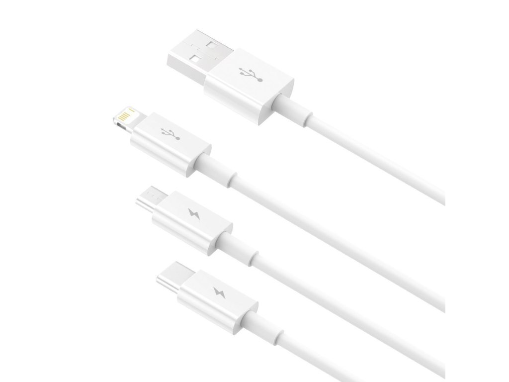 Kabel USB 3v1 Baseus Superior Series, USB na micro USB / USB-C / Lightning, 3,5 A, 1,5 m (bílý)