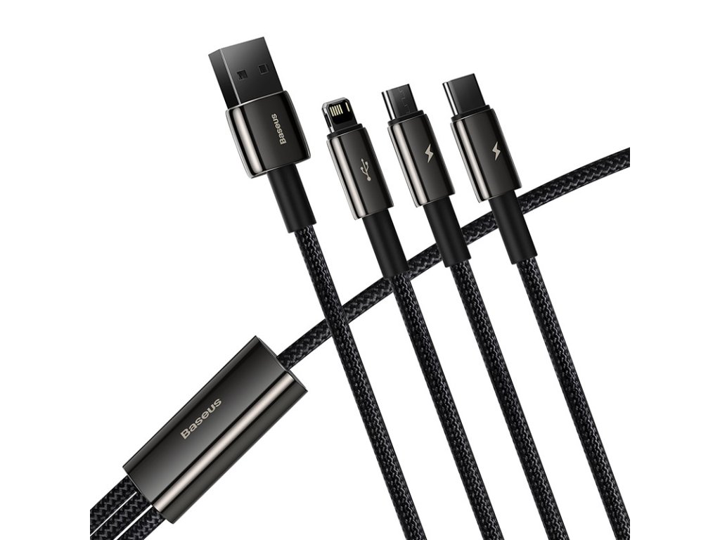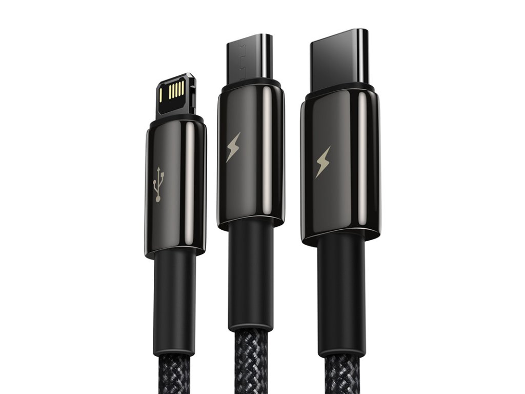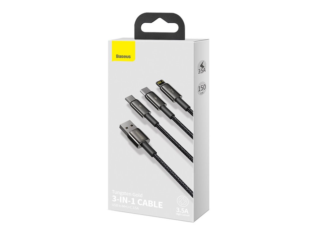 Kabel USB 3v1 Baseus Tungsten Gold, USB na micro USB / USB-C / Lightning, 3,5 A, 1,5 m (černý)