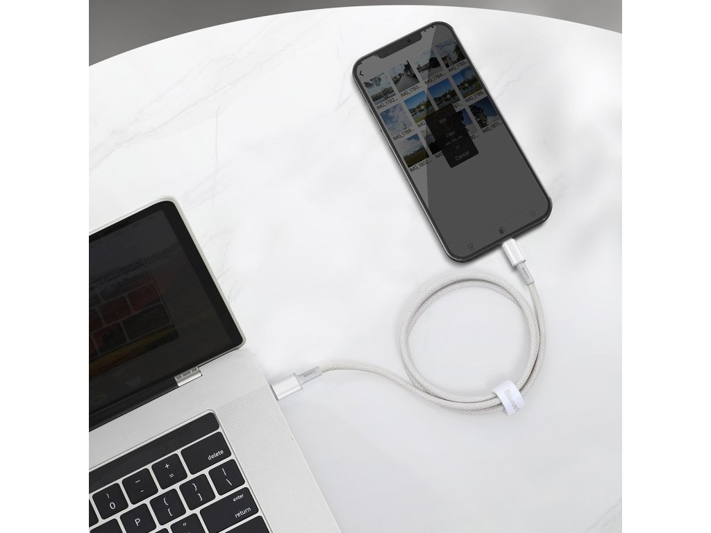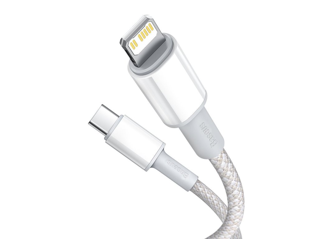 Kábel USB-C na Lightning Baseus s vysokou hustotou opletenia, 20 W, PD, 2 m (biely)